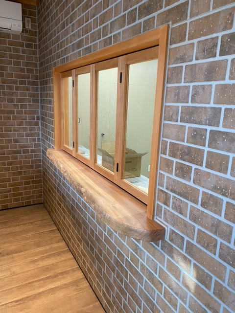 カウンターはお皿がのる程度大きくし、ステインのホワイトにウレタンクリア仕上げ